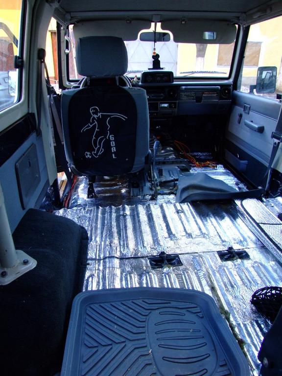 l_stoian79 Postat Martie 6, 2012 Autor Partajează Postat Martie 6, 2012 (editat) Re: Toyota LJ73 a lui l_stoian79 - Toyotu' am folosit folie bituminoasa aluminizata Ekobit pe usa spate (cea mare) si pe panourile laterale sub panoul usii spate am lipit pasla fonomin (cu banda dublu adeziva): pe podea am intins un strat de pasla fonomin cu densitate mai mare (ala verde): peste care am pus fonomin mai "pufos" : si sub mocheta originala de pe pasajele rotilor spate am bagat fonomin pufos. Poze in zona pedalelor n-am mai facut aseara ca era intuneric si ieseau aiurea. o sa fac azi. Ce urmeaza: - fonomin "pufos" pus in panourile laterale in zonele critice. Sub consola centrala o sa dublez stratul de fonomin pufos. Peste toate astea se va pune mocheta originala si fetele laterale. Editat Martie 6, 2012 de l_stoian79 "Explore.Dream.Discover."-Mark Twain cele mai bune lucruri din viata mea: http://picasaweb.google.com/olivia.iris.stoian :n1 "my precioussssss" :jp1: http://picasaweb.google.com/stoian.l.m :bannana Link spre comentariu Distribuie pe alte site-uri Alte opțiuni partajare...