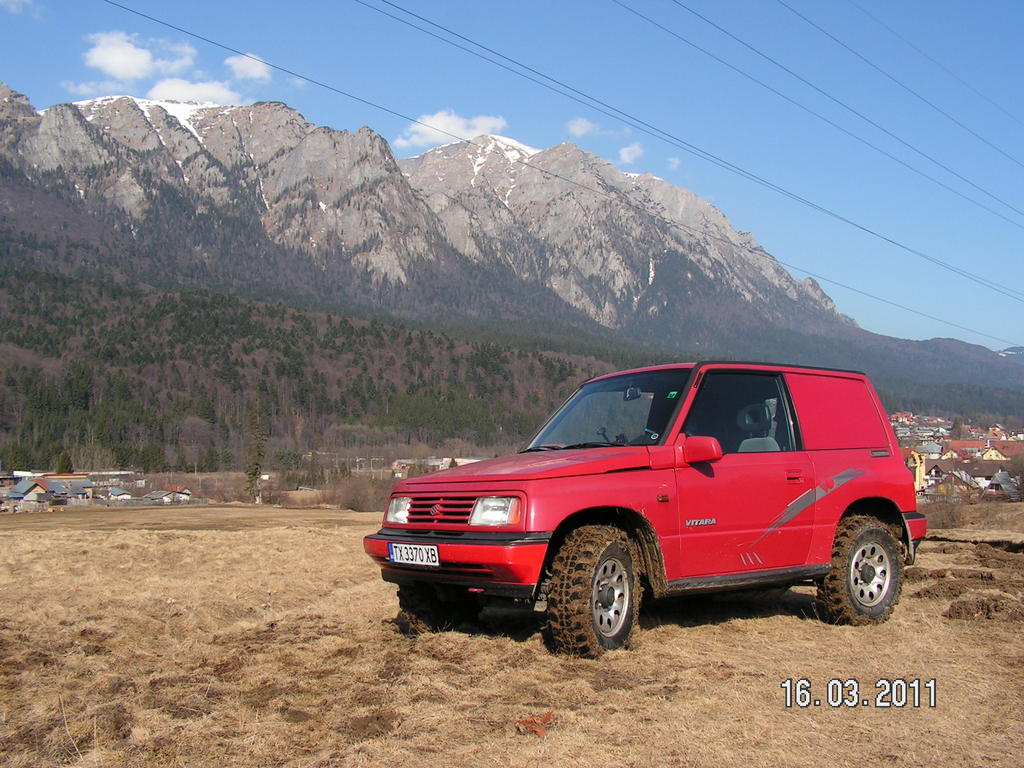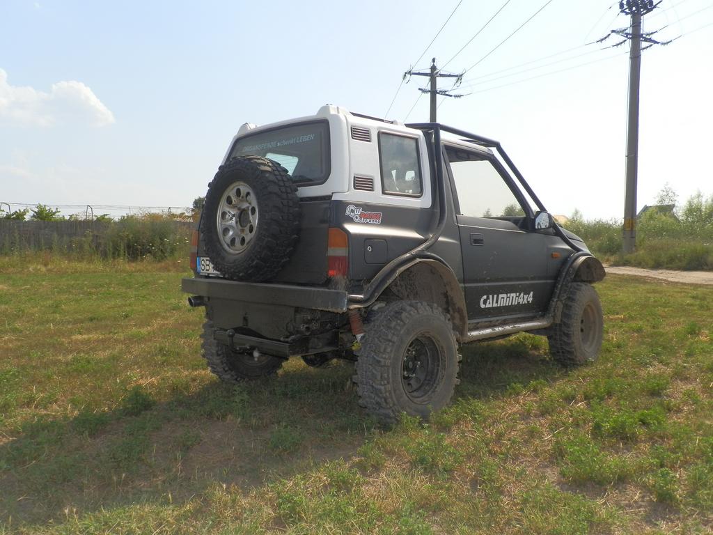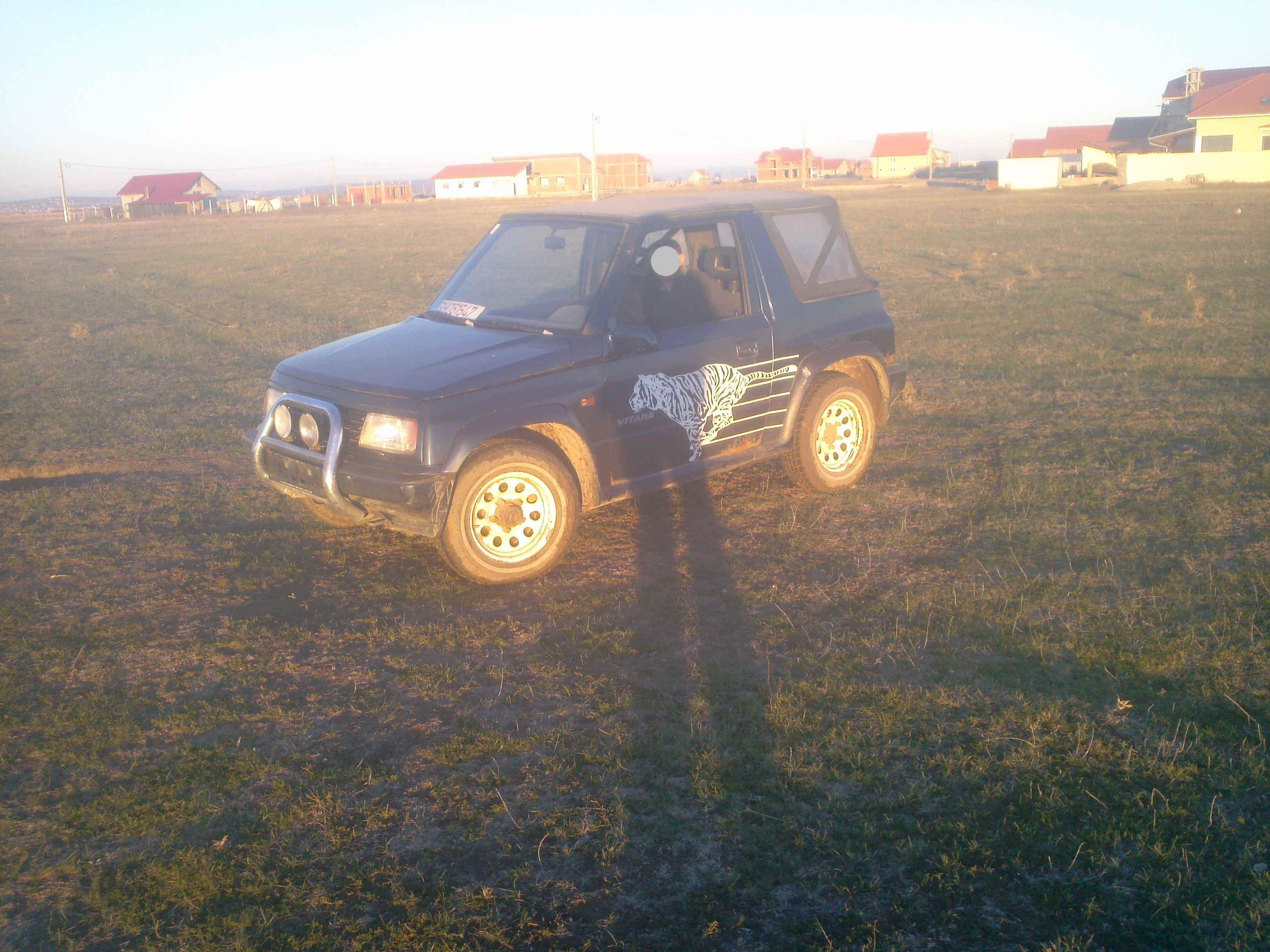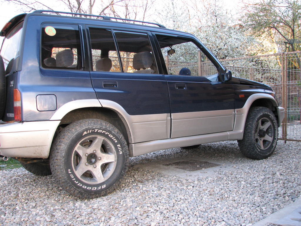covaciusorin Postat Mai 11, 2012 Partajează Postat Mai 11, 2012 (editat) Re: Posesori Vitara Va salut! Sint posesor si eu de Vitara 1,6 8v, 59kw, 80 cp, an '99,metaltop, 138000km, benzina+GPL. Masina am luat-o in octombrie 2011,era nemodificata si i-am pus urmatoarele: -kit sl 5cm -kit bl 3cm -flansa cardan si flansa bascula, -suruburi excentrice(camber bolts) -set bucse poliuretan -suporti mai lungi pentru diferentialul fata -snorkel -scut fata -jante 7j cu et-25 -cauciucuri MT 235/75/R15 Maxxis Trepador -statie intek m799+antena ml 145 Vreau sa-i pun bara fata si spate din teava, troliu(am un T-Max 6500lbs),blokant spate,mrl manuale. Poze cu masina: Editat Mai 11, 2012 de covaciusorin Link spre comentariu Distribuie pe alte site-uri Alte opțiuni partajare...
