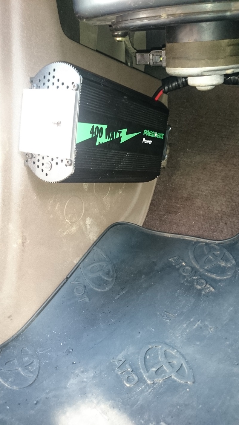 Am repozitionat stingatorul cu pulbere pe stalpul din stanga spate si asigurat cu QuickFist, apoi am pus si invertorul ca statea degeaba prin sertar de vreo 6 ani!