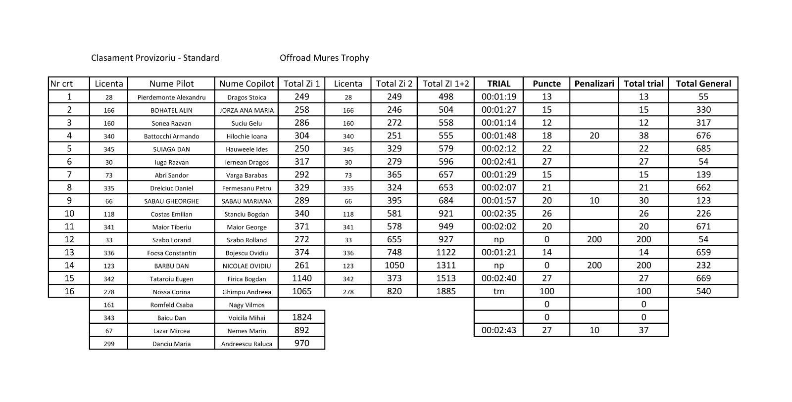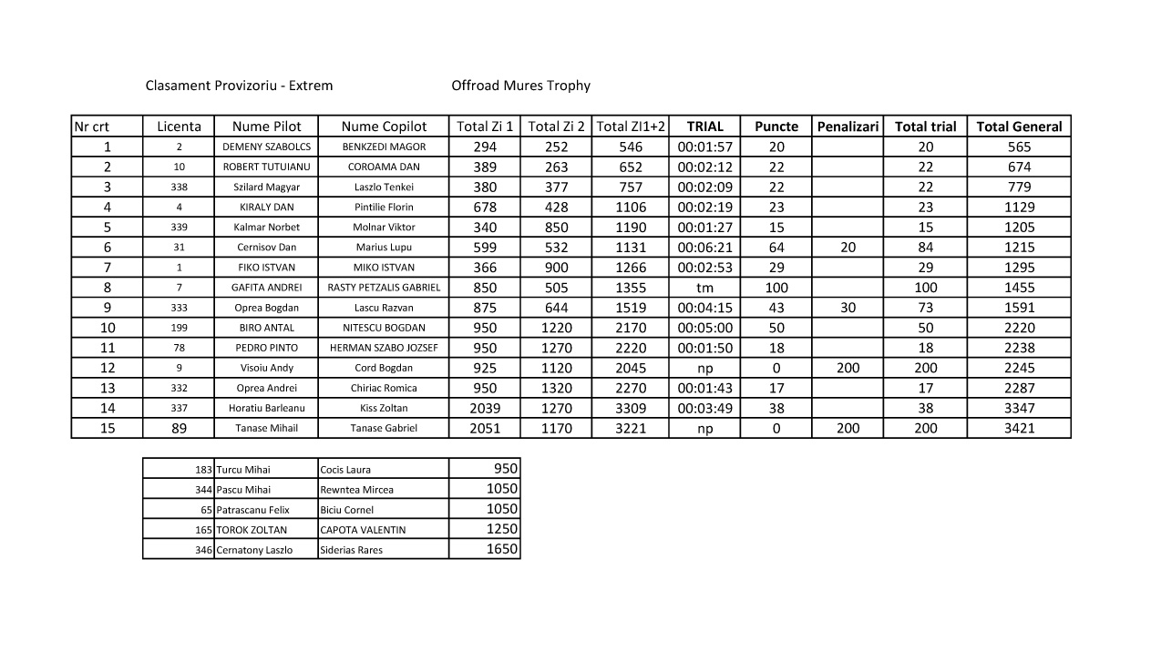 Pentru a linistii spiritele incinse vreau sa precizez ca noi am vrut doar sa ne dam in concursul acesta si nu vrem sa suparam pe nimeni de aceia renuntam bucurosi la pozitia noastra in clasament. Pentru noi motivul prezentarii la aceasta etapa a fost parcurgerea traseului mai ales ca am avut numai experiente pozitive cand am participat la Tg Mures in ceilalti ani.