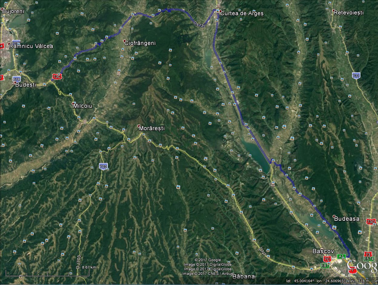 omoroka Postat Ianuarie 1, 2018 Autor Partajează Postat Ianuarie 1, 2018 Re: Rute de ocolire a nodurilor de trafic intens Salutare si LA MULTI ANI tuturor. Revin asupra acestui topic întrucât ieri am reușit sa verific câteva rute ocolitoare împreuna cu un prieten. Am plecat așadar pe la 7 dimineața din București spre Pitesti unde am verificat ruta ocolitoare a Bascovului... si nu numai, așa ca citiți următoarele mele postări daca subiectul prezinta interes pentru voi :grin: Am ajuns rapid in Pitesti si tot rapid, mai exact in 15 minute, am reușit sa parcurgem ruta de ocolire a Bascovului pe care v-o pun la dispoziție atât ca imagine cat si ca track. In concluzie, daca întâlniți coada la ieșirea de pe autostrada chiar înainte de curba spre pasajul Bascov, trebuie sa știți ca ambuteiajul va poate costa cam o ora de stat in coada iar ocolirea de mai jos va poate scurta suferința cu aproximativ 45 minute. Ocolirea poate fi abordata cu orice fel de autovehicul, fiind 95% drum asfaltat. Ocolire Bascov prin Glambocu.kmz Va urma! Va salut ! Link spre comentariu Distribuie pe alte site-uri Alte opțiuni partajare...